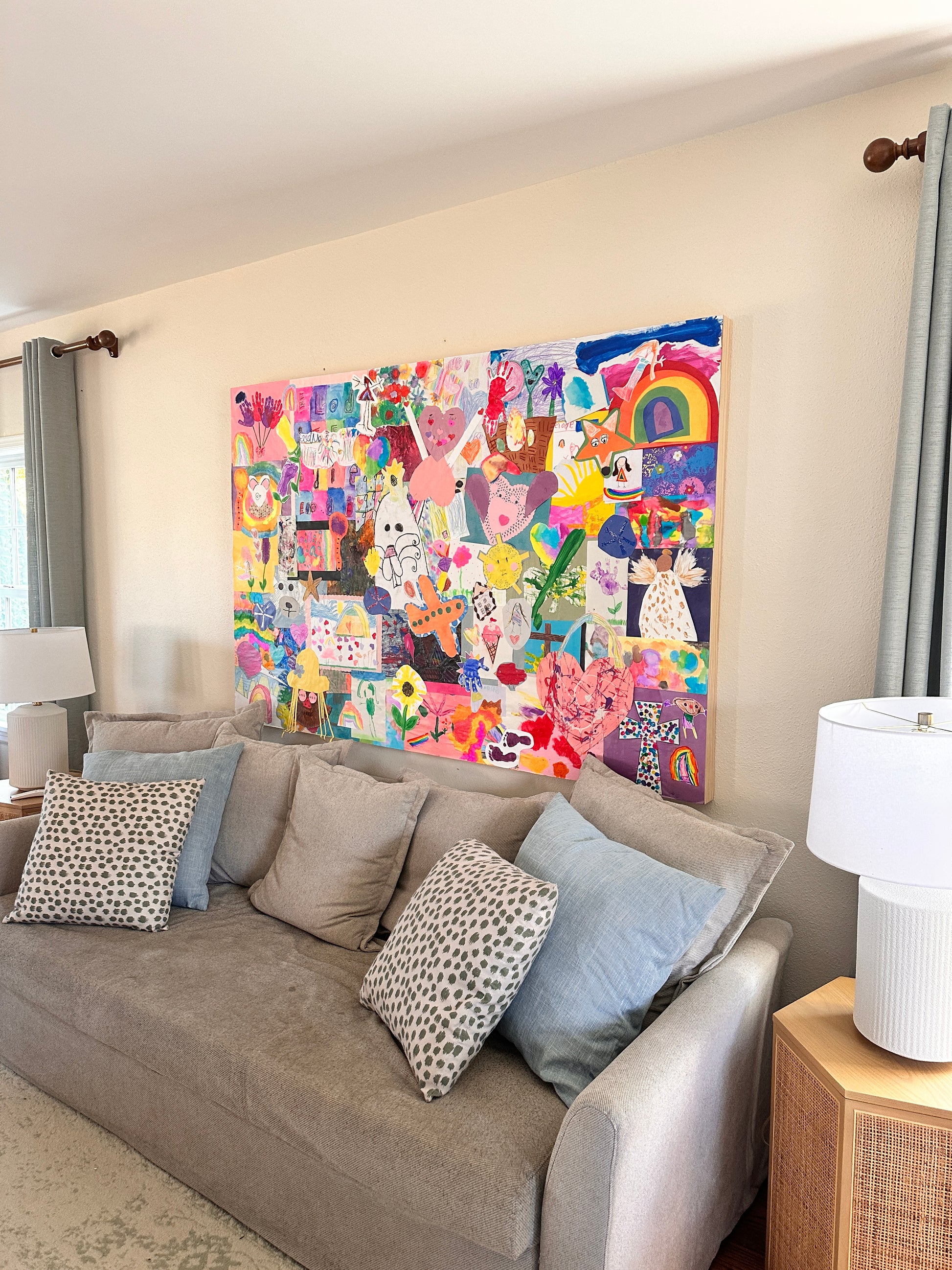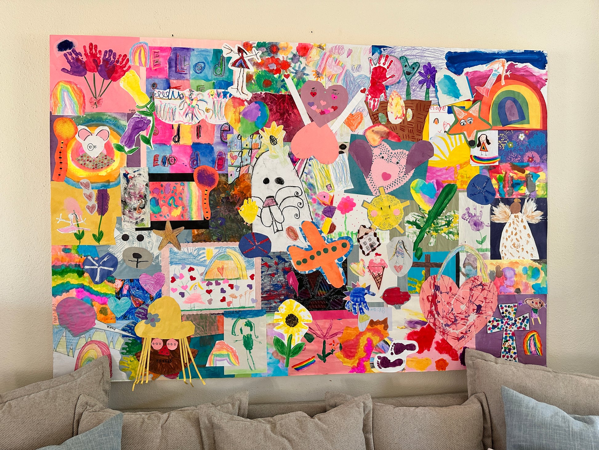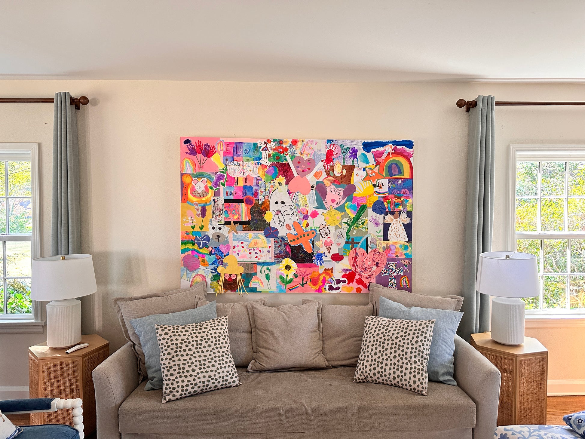 We curate and arrange your child's artwork into a balanced composition, using precision cutting and thoughtful layering to create a unified piece. Each collage is sealed with multiple coats of UV-resistant matte finish for lasting protection.