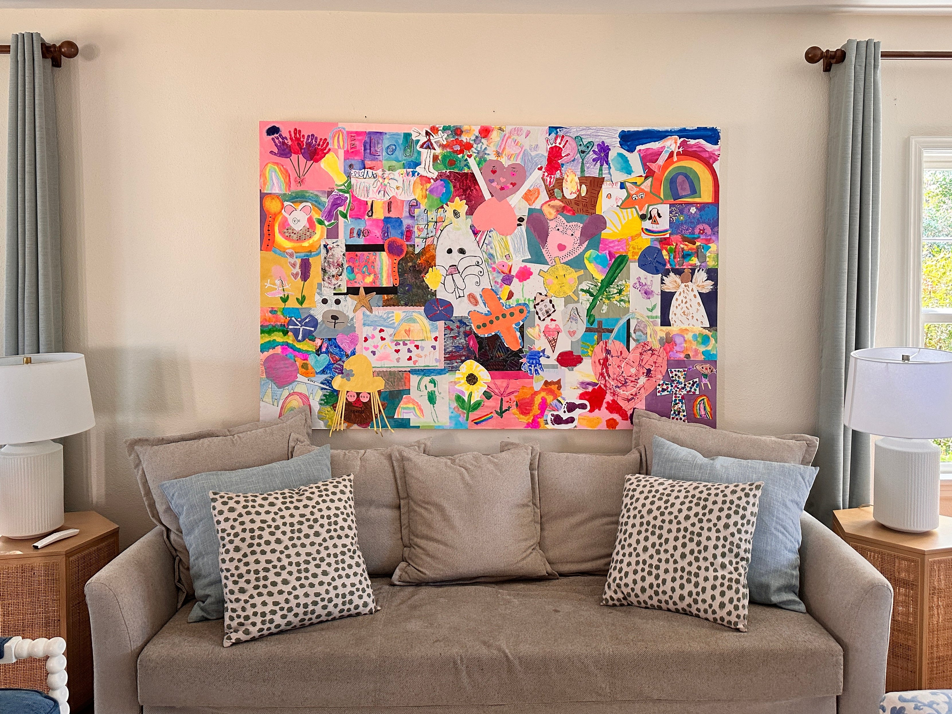 After:"This collage is now the centerpiece of our living room. My mom sobbed when she saw it at Christmas. I finally feel at peace about all that artwork. Worth every single penny."